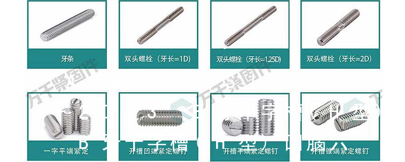 主要分類包括普通螺絲、機螺絲、自攻螺絲和膨脹螺絲三種。 有頭螺釘Cap screw 過去限于全牙的扣件。 六角頭螺釘Hex cap screw與大六角螺栓Hex bolt 顧名思義為頭部為六角型的外螺紋扣件,設計為使用扳手轉動。依照ASME B18.2.1標準,六 1)開槽普通螺釘多用于較小零件的連接。它有盤頭螺釘、圓柱頭螺釘、半沉頭螺釘和沉頭螺釘。盤頭螺釘和圓柱頭螺釘的釘頭強度較高,瑁在普通的部件連接上;半沉頭螺釘的頭部呈弧形,安裝后它的頂端略外露,且美觀光滑,一般用