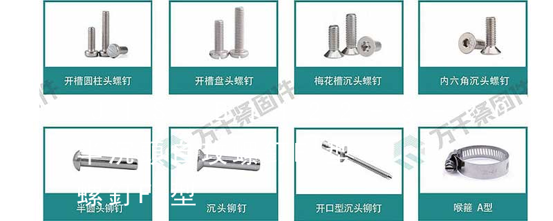 六角花形等;內(nèi)扳擰:一字槽、十字槽H型、十字槽Z型、十字槽F型、四方槽、復(fù)合槽、內(nèi)花鍵、內(nèi)六角花形、內(nèi)三角、內(nèi)六角、內(nèi)12角、離合器槽、六葉片型槽、高扭矩十字槽等。3、螺紋種類(lèi)螺紋種類(lèi)繁多,有自攻螺紋( 1)六角頭(hexagon head)2)六角頭法蘭面(hexagon head with flange)3)方頭(square head)3.按照槽型可分為 1)菲利普 2)十/一字 3)一字 三. 品質(zhì)檢測(cè) 1.對(duì)螺絲釘打頭成形的檢測(cè),在打螺釘成形當(dāng)中,先是對(duì)生產(chǎn)